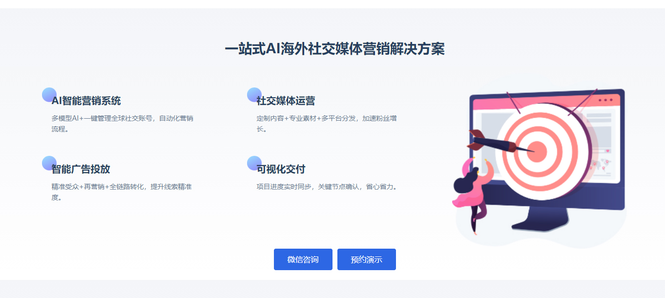 2. 数据驱动的精准运营体系:依托自研数据分析系统,它强调从市场趋势、竞品动态到用户行为数据的全面整合与分析,旨在实现客户画像的精准描绘、广告投放的实时优化与营销投资的回报最大化。其提供的“全周期一对一专属服务”,确保了从策略到执行、优化的一体化闭环。